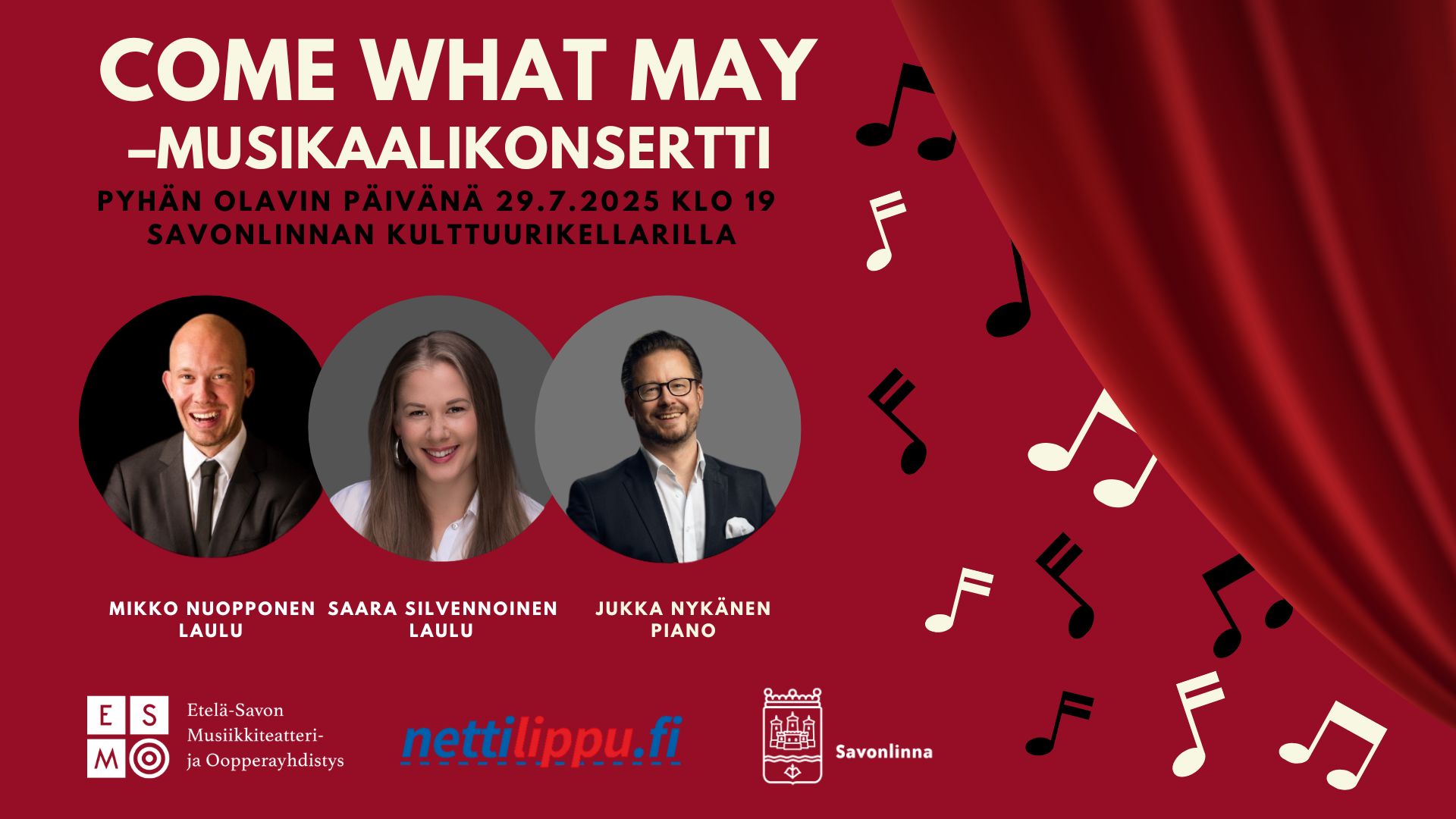 Etelä-Savon Musiikkiteatteri- ja Oopperayhdistys, ESMO ry tuo Savonlinnaan Pyhän Olavin päivänä nautittavaksi musikaalikonsertin, jossa esiintyvät savonlinnalaisille tutut laulajat, Saara Silvennoinen ja Mikko Nuopponen sekä pianisti Jukka Nykänen. Konsertin ohjelmisto koostuu tunnetuista musikaalihiteistä sekä kauneimmista musikaali duoetoista.